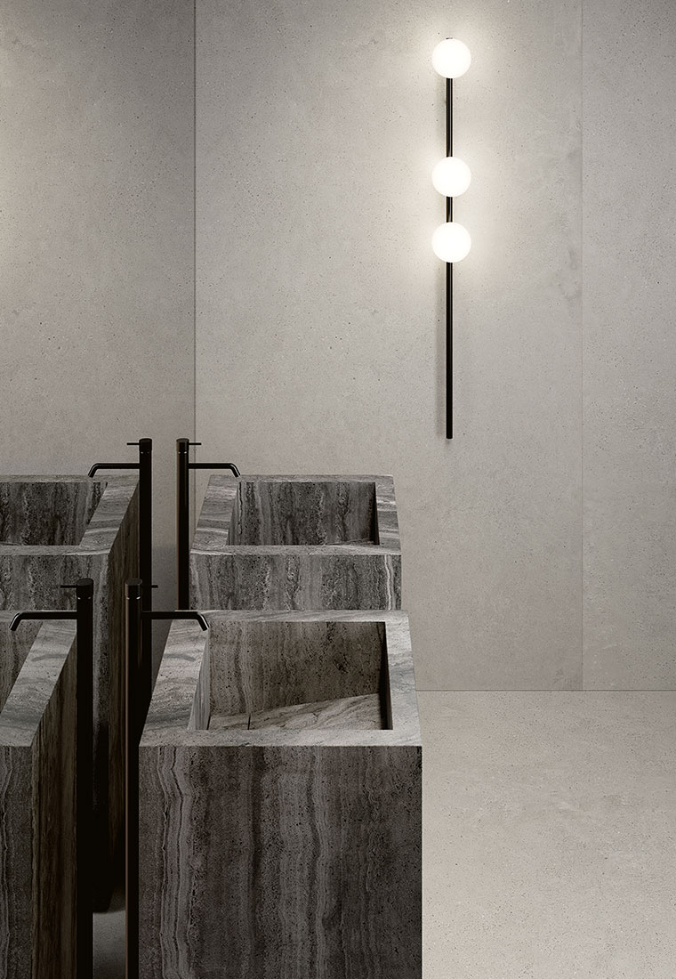 Dalle grandi lastre in gres porcellanato WIDEgres 6 mm nasce una gamma di soluzioni per lavabi, mensole e piatti doccia, tutte personalizzabili per adattarsi alle esigenze progettuali di designer e architetti.