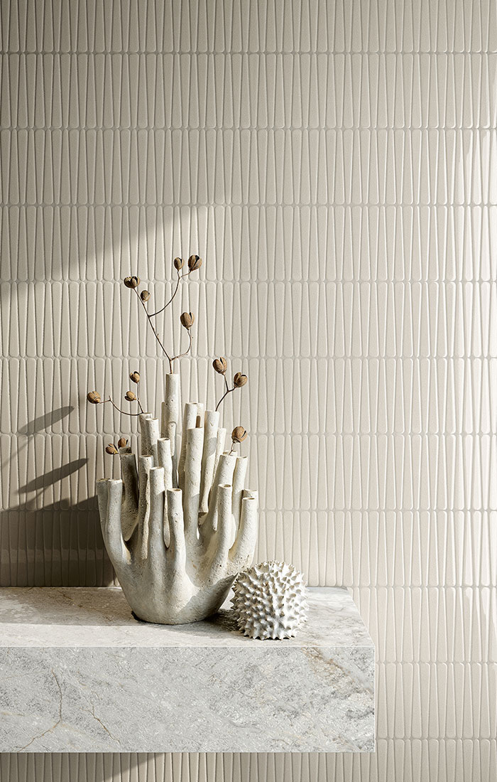 Nelle diverse ambientazioni presentate sul sito, troviamo DROPS protagonista in raffinati bagni, dove valorizza la parete doccia o l’area lavabo; in cucine dal design ricercato, come rivestimento decorativo che illumina lo spazio; e in living sofisticati, dove dialoga con superfici neutre creando contrasti delicati e suggestivi giochi di luce. In ogni contesto, DROPS non sovrasta, ma impreziosisce, trasformando la parete in un segno architettonico distintivo.