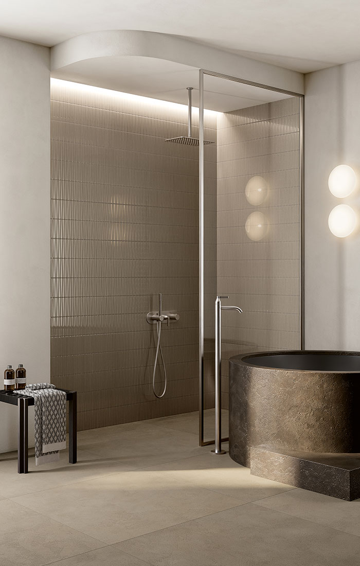 Nelle diverse ambientazioni presentate sul sito, troviamo DROPS protagonista in raffinati bagni, dove valorizza la parete doccia o l’area lavabo; in cucine dal design ricercato, come rivestimento decorativo che illumina lo spazio; e in living sofisticati, dove dialoga con superfici neutre creando contrasti delicati e suggestivi giochi di luce. In ogni contesto, DROPS non sovrasta, ma impreziosisce, trasformando la parete in un segno architettonico distintivo.