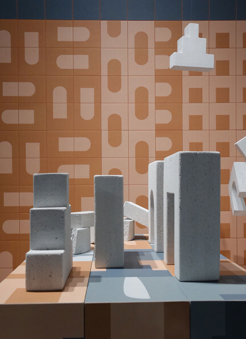 Emozionare le persone con la scoperta della bellezza del patrimonio architettonico e paesaggistico italiano non poteva che passare attraverso una vera e propria “esperienza” che Fioranese ha messo a disposizione dei propri clienti e visitatori durante Cersaie 2023. Nella splendida cornice di Palazzo Aldovrandi a Bologna, uno dei palazzi più belli e suggestivi della città, le serate affiancate al Cersaie sono state lo spunto per apprezzare la bellezza italiana. In una delle corti più intime del palazzo, tramite la tecnica del videomapping, sono state proiettate delle vere e proprie animazioni che giocavano con la modularità e con il colore di Italian Landscape facendole nascere dall’architettura stessa del palazzo, che si smaterializzava e ricostruiva pixel per pixel dando una chiave di lettura del tutto inedita al prodotto. La ceramica diventa dinamica, e costruisce la propria immagine scomponendo e ricomponendo trame e disegni complessi sulla superficie storica di un edificio. L’esperienza visiva “astratta” era completata da una parte di allestimento “materiale”, che rendeva il giusto valore alla storicità dei decori e del luogo in cui si trovavano, composto da volumi puri che riempivano lo spazio delle sale a volta del palazzo. I volumi più piccoli, costruiti dai decori, si trasformavano in arredi archetipici, elementi dell’allestimento ma anche elementi dell’esperienza, veri e propri tavoli e sedute che potevano essere utilizzate per godersi l’installazione immersiva o gustare una food experience a tema, ovviamente, legato alle tre città italiane.