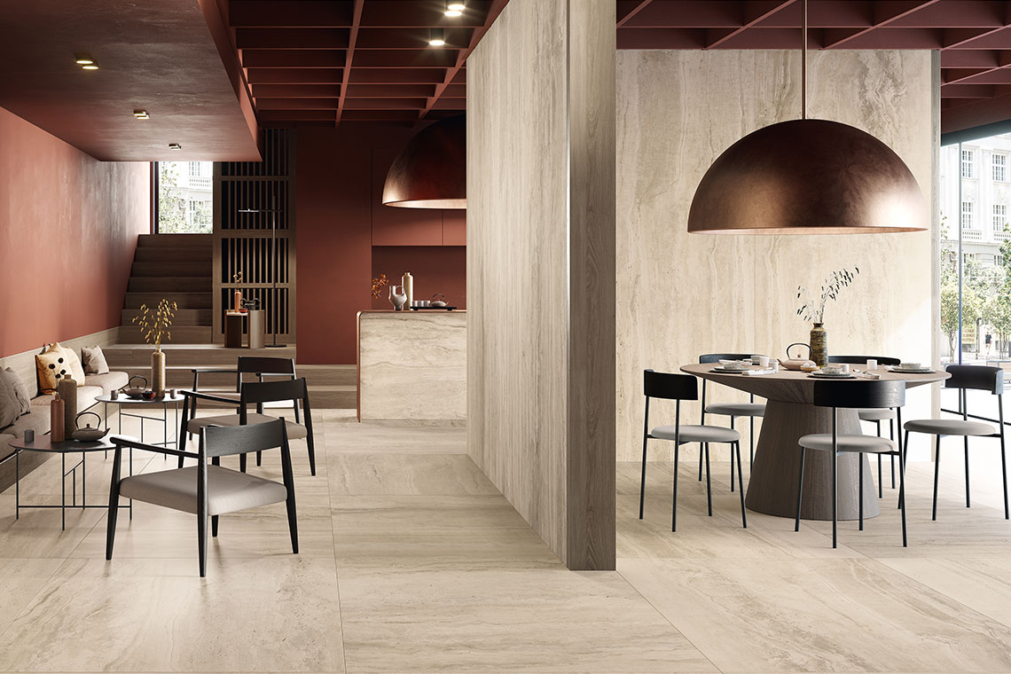 In contemporary interior design, surfaces are no longer a mere neutral backdrop; they’re activators of a material dialogue. Floors and wall coverings interact with furnishings, fabrics and finishes, shaping spaces where comfort is a question of perception as well as function. The message from the latest trends is clear: design is evolving towards a warm, layered aesthetic, with a deliberate measure of imperfection, in which ceramics become the point of balance between different materials, establishing a new equilibrium that speaks of matter, nature and design in every one of our new projects.