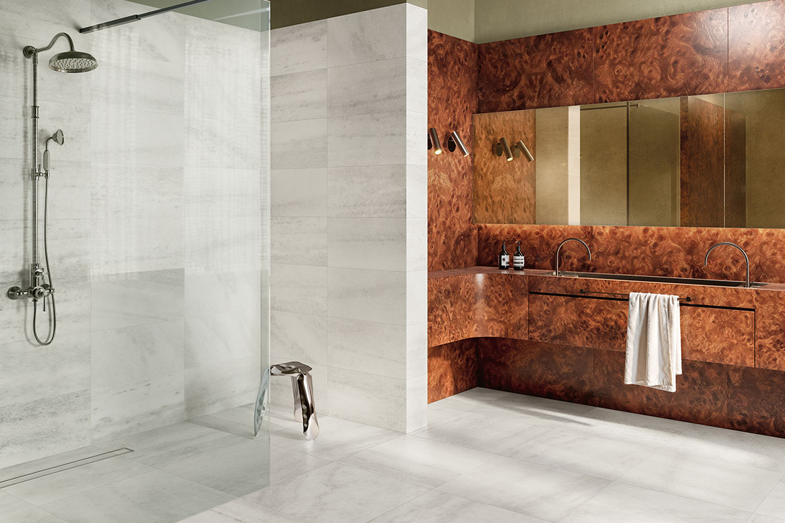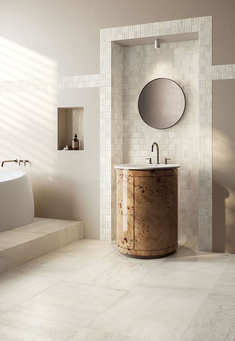 The centrepiece of the exhibit is the Milano Sublime collection, developed by Coem in collaboration with the Veneranda Fabbrica del Duomo di Milano. The surfaces reinterpret the material and decorative allure of the cathedral in a contemporary key, translating the rich, symbolic aesthetic of Candoglia marble into a ceramic language. Textures, colours and details evoke the stone, light, and elaborate architecture of the monument, engaging directly with the historical setting it is part of. This allows the installation to slot naturally into the urban space, amplifying its value and offering a new way to enjoy the piazza. During Fuorisalone week, Piazza dei Mercanti becomes not just a square to pass through, but a destination: a space to stop, observe, and enjoy design as an everyday experience.