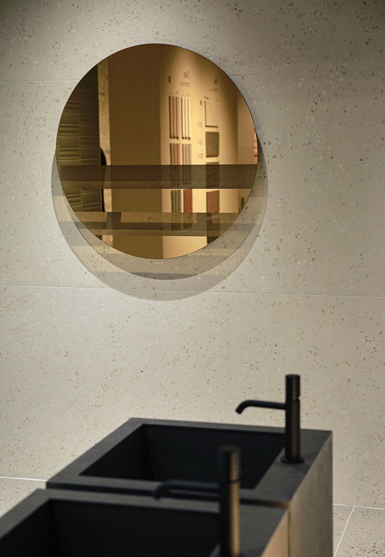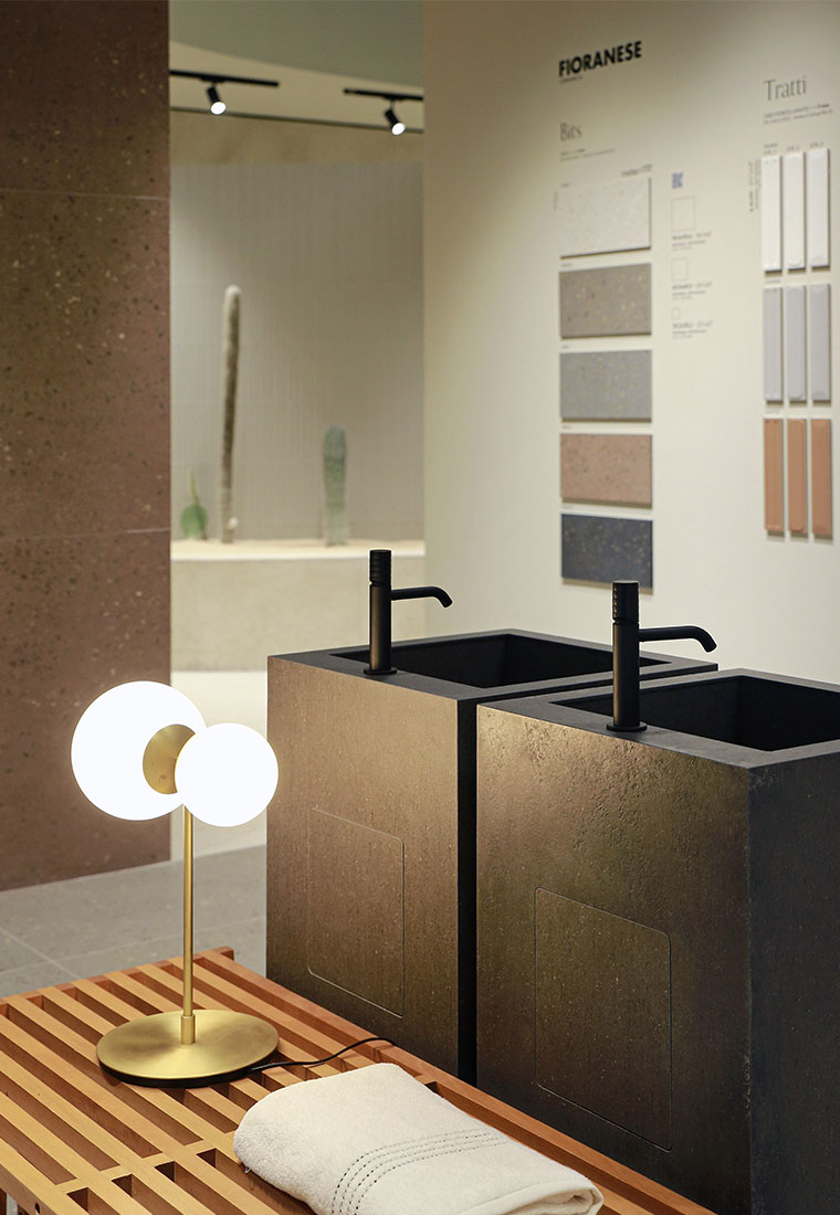 With Bits, Fioranese puts a contemporary spin on the terrazzo tradition, with a crisp, rigorous, yet vibrant aesthetic. Small, irregular inserts rise to the surface like random signs, marking a visual pace that alternates apparent chaos and rigorous precision. The result is a material minimalism that brings character to contemporary living spaces, offering a subtle balance between detail and background. Bits thus demonstrates that even fragments, when orchestrated coherently, can build a visual language of great expressive power.