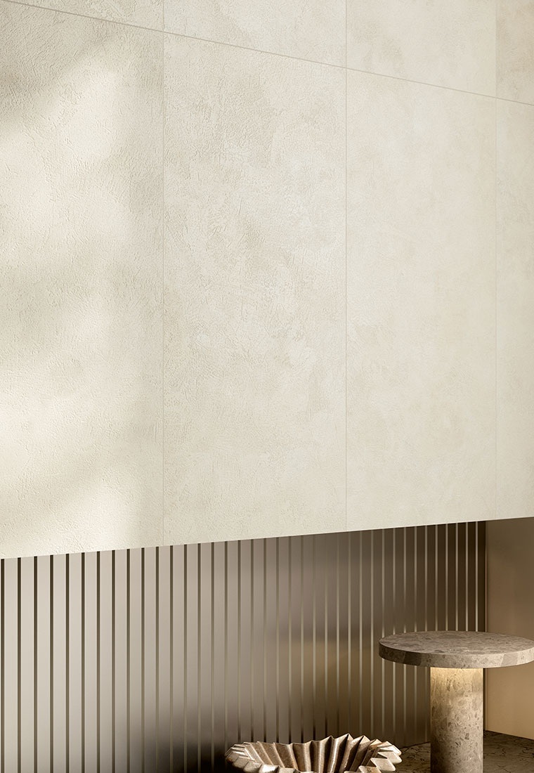 Sur le site, les collections Fusion Plaster et Tratti deviennent des outils créatifs pour interpréter le nouvel équilibre du design d’intérieur.
